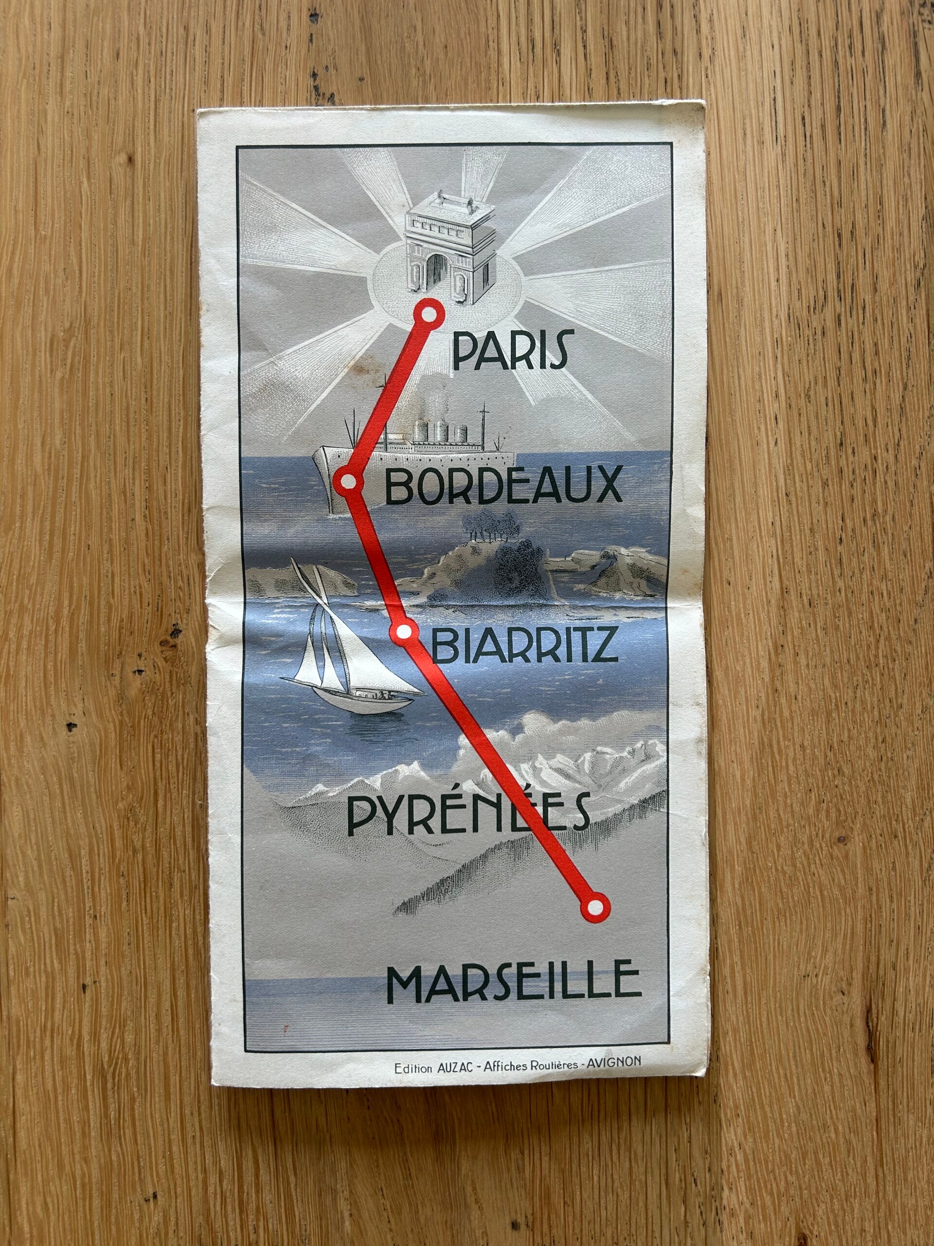 oude franse wegenkaart PerrierParis Bordeaux Biarritz Pyrénées Marseille