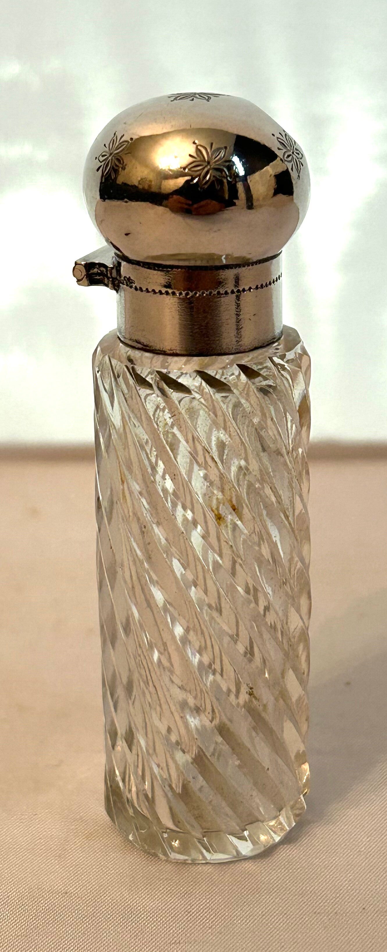 oud Hollands sterling zilveren kristal parfumflesjezilveren gedecoreerd deksel2 keurtekens, Nederlands zilver (zwaard) , makersmarkhoogte 8cm