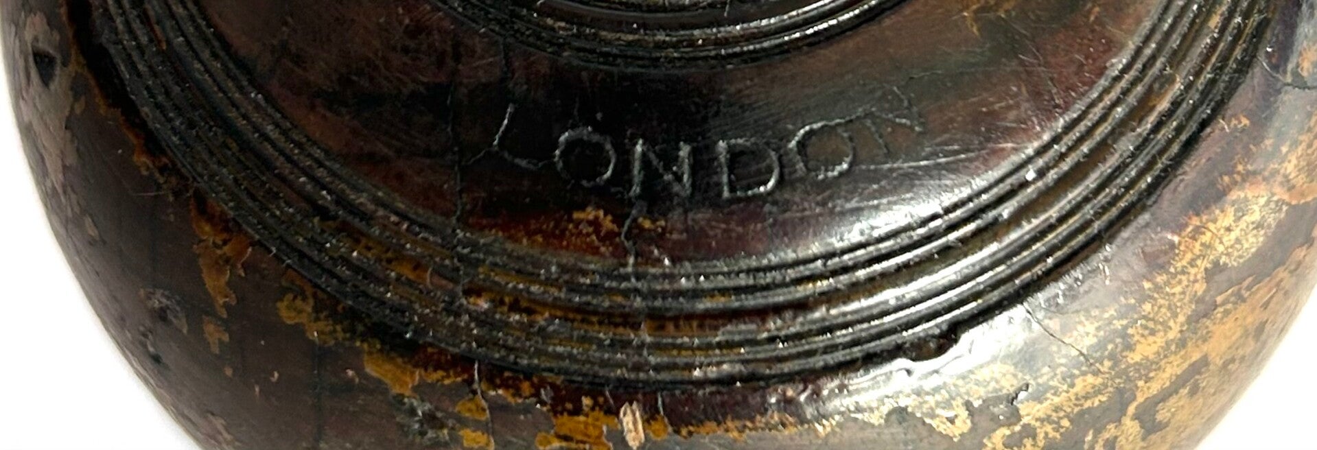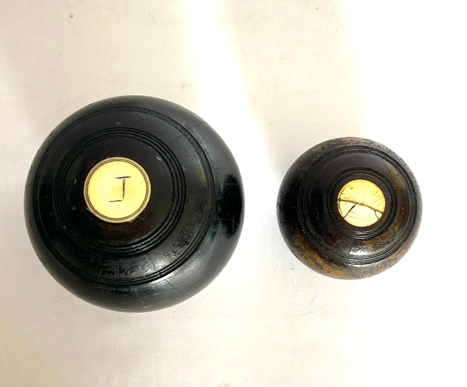 Paar antieke lawn bowlingballen zwart gebeitst guaiac-hout