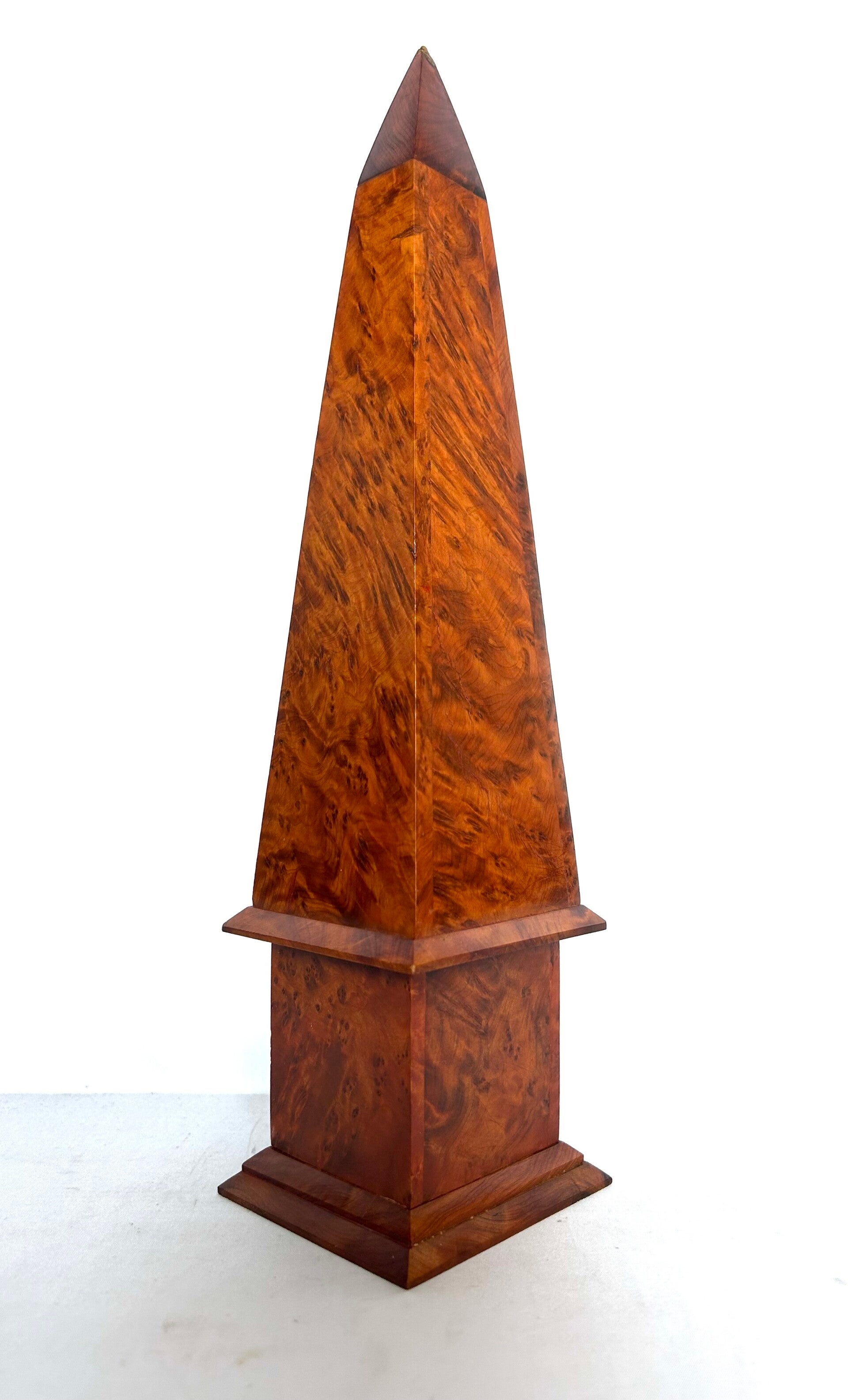 antieke obelisk van wortelnotenhout decoleuk oud decoratief objectpuntje toont oude herstelling, mooi gedaanHet is een bijzonder decoratief object.l x b x h32 x 7,7 x 7,3 cm