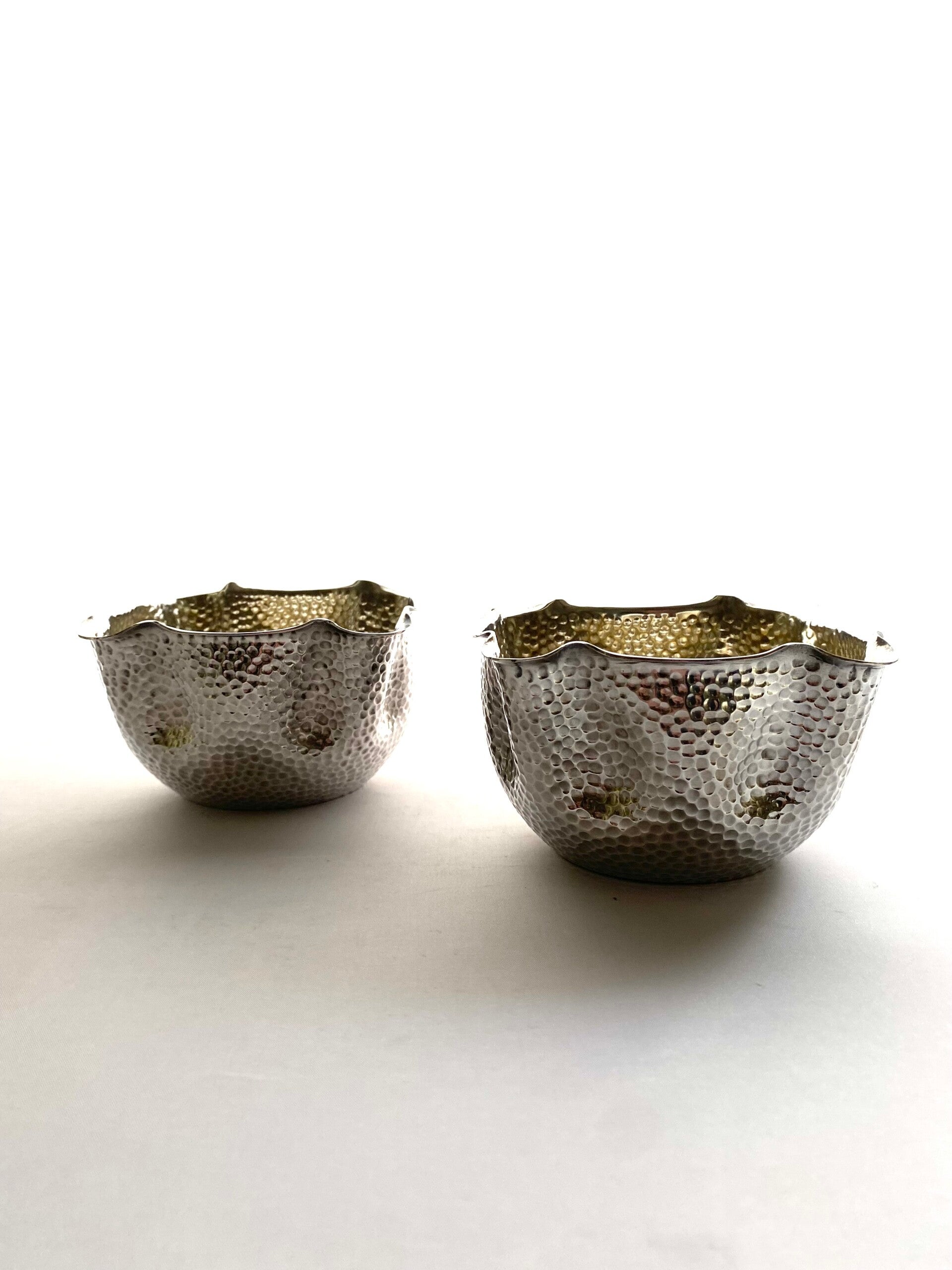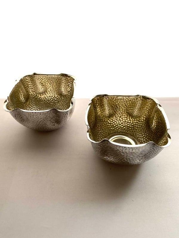 2 verzilverde gehamerde kommenbeide gemerkt met stempel 'Fallon'super mooie staat van de zilverlaag!l x b x h11 x 11 x 6,5cm