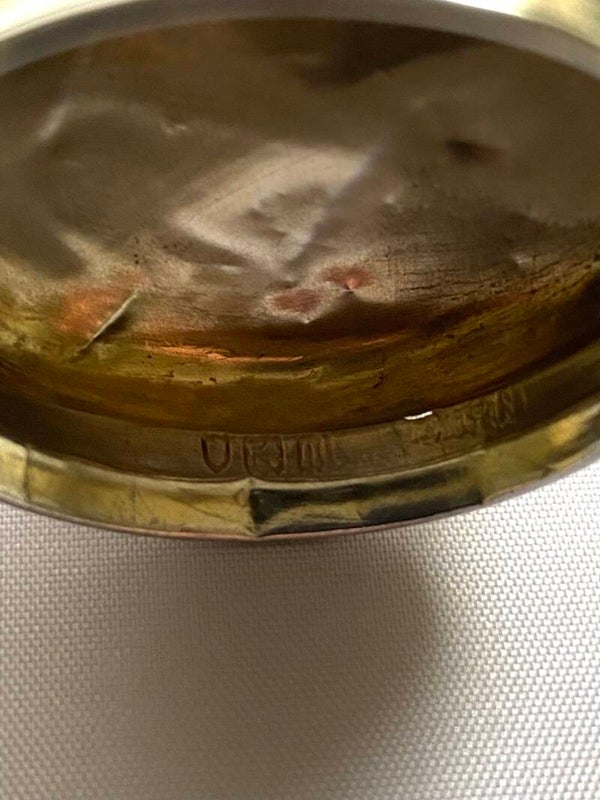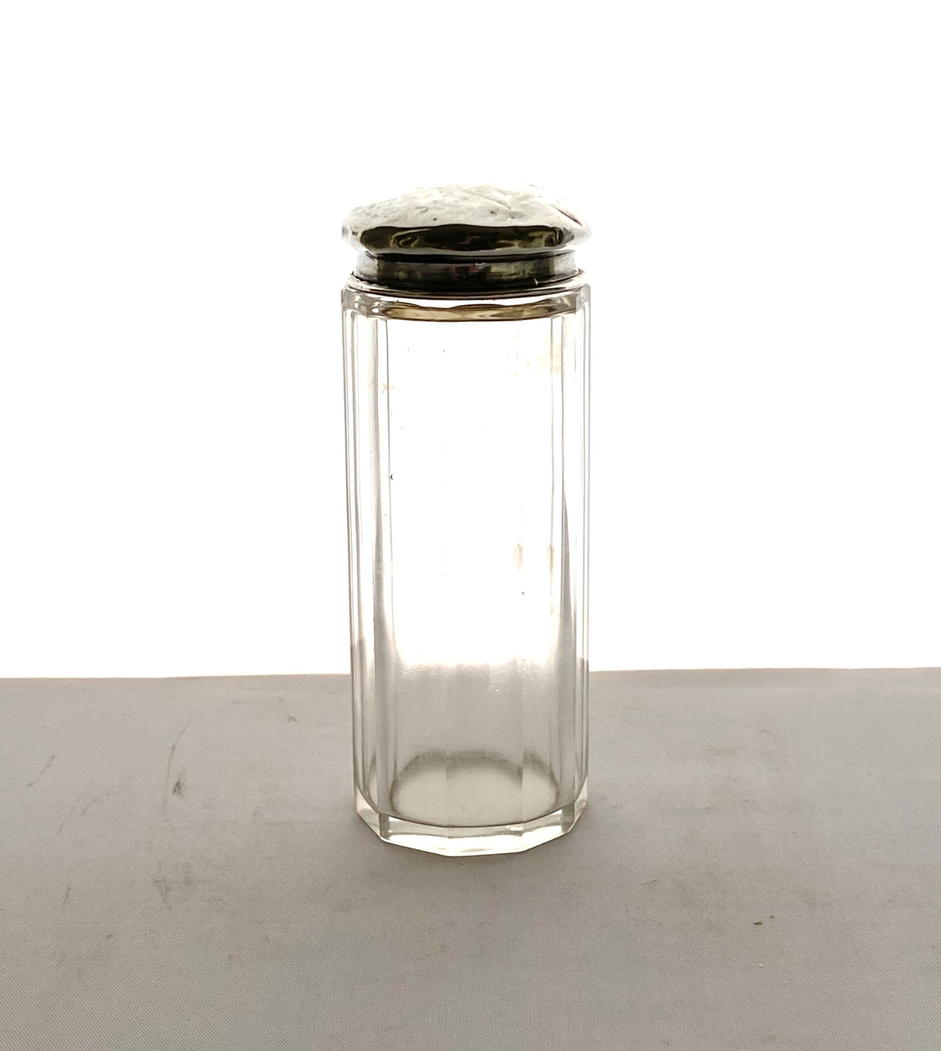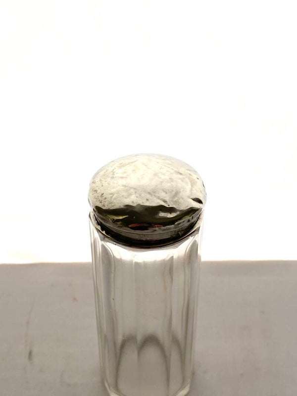 Kristallen kaptafelpotje met Engels zilveren stopHallmarks:lion passantleeuwenkop (London)n jaarletter 1908H.P & Ss: Henry Perskins & sons